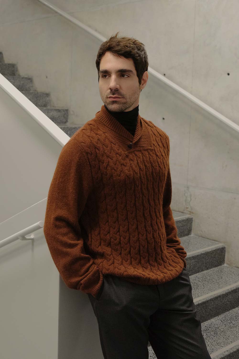 Poncho La Favorita Jacquard - Marron Tabaco Y Regaliz